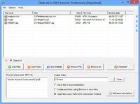Own Okdo All to Pdf Converter Professional you can convert numerous formats like doc, docx, docm, xls, xlsx, xlsm, ppt, pptx, pptm, pdf, txt, rtf, htm, html, url, jpg, jpeg, bmp, gif, tif, wmf, emf, png, jp2, j2k, pcx etc to pdf in batches.